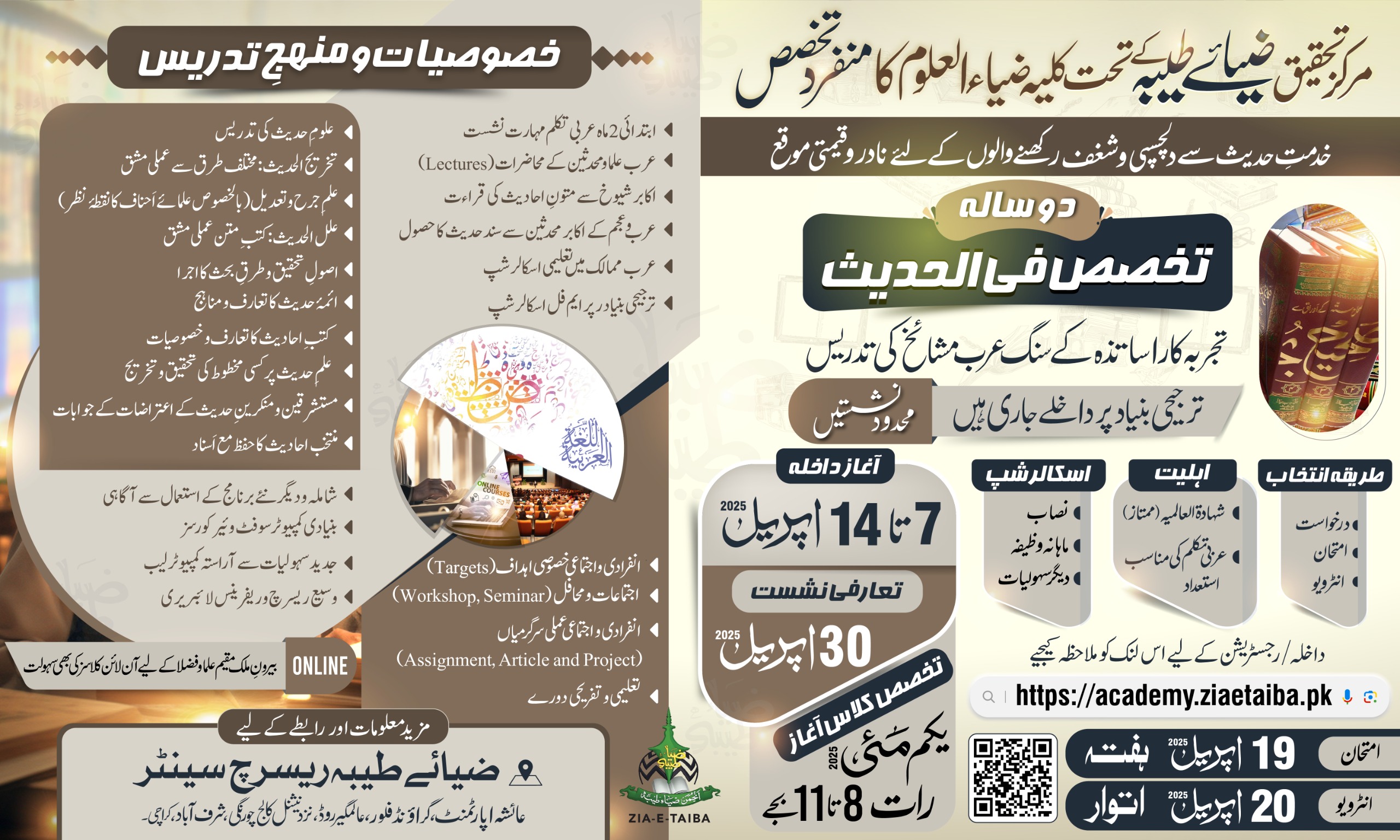 مرکز تحقیق ضیائے طیبہ کے تحت کلیہ ضیاءالعلوم کا ایک منفرد تخصص۔۔۔